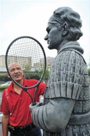 2007年,上海大師杯賽組委會(huì)邀請(qǐng)法國(guó)女雕塑家勞芮·迪岑格蕾麥爾與來(lái)自四川美術(shù)學(xué)院的申曉楠、張亞西夫婦組成了“始作俑者”,為當(dāng)年參賽的八位大師塑像。沒(méi)想到創(chuàng)意一炮而紅,現(xiàn)八座兵馬俑雕像被運(yùn)至溫布爾登網(wǎng)球博物館永久留存。