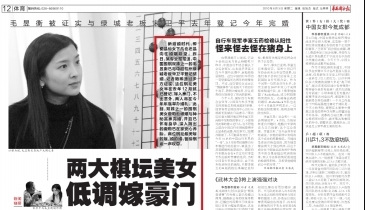 新結(jié)婚時(shí)代,即便是仙女下凡也還是向往婚姻殿堂。昨日,某專業(yè)報(bào)報(bào)道,中國(guó)圍棋雙姝之一的毛昱衡已與中超杭州綠城老板宋衛(wèi)平登記結(jié)婚,記者隨即通過(guò)多方證實(shí),這位棋壇美女早在去年12月就已登記,嫁入豪門(mén),不出意外,兩人將在今年年底舉辦婚禮。此前,雙姝之一的圍棋美女唐莉也被爆與神秘富豪完婚,并且已懷有身孕,深入簡(jiǎn)出的唐莉已在家安心養(yǎng)胎。兩位棋壇最美嫁的嫁,婚的婚,留給棋迷一聲嘆息。
