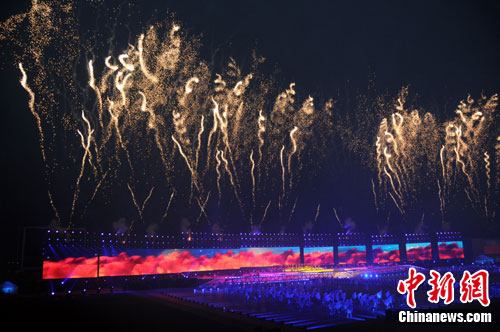 當(dāng)晚的開幕式文藝演出在新落成的那達(dá)慕大會(huì)會(huì)場舉行,由《夢回草原》、《夢醒草原》、《夢圓草原》和《鄂爾多斯乘著夢的翅膀》等四個(gè)篇章組成,包括騰格爾、德德瑪、鳳凰傳奇等蒙古族藝術(shù)家以及維塔斯、wonder girls組合等國際明星的助陣,讓夜色中的鄂爾多斯綻放出耀眼的光芒。