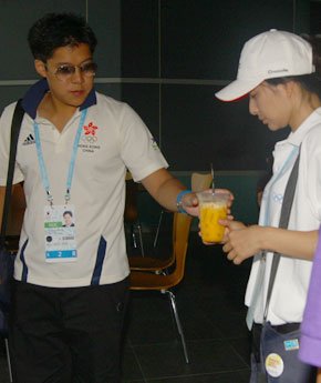 昨天下午新加坡烈日當(dāng)頭,氣溫很高,在活動進(jìn)行到一半時,體貼的霍啟剛還為郭晶晶買來了冰鎮(zhèn)飲料,并在活動結(jié)束時大方地來了個單獨合影。