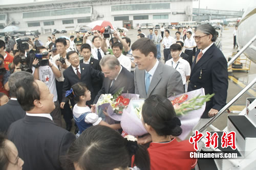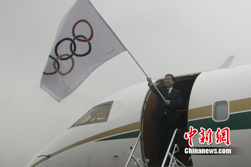 陪同并護送青奧會會旗的中國香港奧委會主席霍震霆、南京市市長季建業(yè)等11名官員、貴賓同機入境。