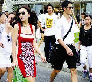 據(jù)拍到這組照片的南方都市報的記者描述,當(dāng)天在世博園閑逛,準備前往人氣爆棚的沙特館,沒想到見到一位紅衣美女從沙特館貴賓通道出來,十分惹眼。正欣賞如花美眷之時,王勵勤出現(xiàn)了。王勵勤穿著一件白色的中袖襯衣和一條黑色短褲,背著一個名牌包包,看起來心情頗好。兩人走出沙特館后就迅速戴上了墨鏡,并保持至少一米的距離。隨后兩人一路步行,與他們同行的還有王勵勤的父母及另一名年輕女子。那名年輕女子見到有人拍照,馬上上前阻止。路上,紅衣女子與王勵勤的母親談笑風(fēng)生,看得出王勵勤的母親很喜歡她。