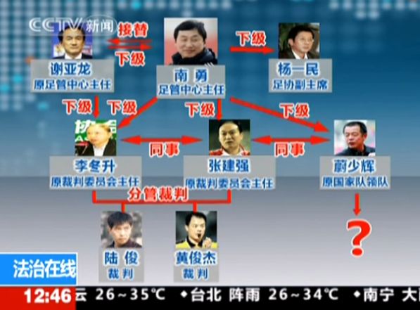2010年1月21日,公安部證實(shí)中國(guó)足協(xié)南勇、楊一民和張建強(qiáng)三名高官被帶走協(xié)查,這證明中國(guó)足球的“反賭掃黑”進(jìn)入了“反腐”的新階段。至此,足協(xié)高官的涉案關(guān)系網(wǎng)逐步被揭開。