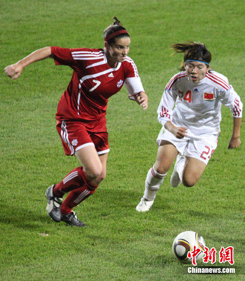 本場(chǎng)比賽開(kāi)始后,互攻的場(chǎng)面只維持了一小段時(shí)間,隨著加拿大隊(duì)明顯加強(qiáng)攻勢(shì)后,中國(guó)隊(duì)便基本上被壓制在自己的半場(chǎng)里。17分鐘時(shí),加拿大隊(duì)通過(guò)左路的傳切配合幾乎得手。一分多鐘后,加拿大隊(duì)禁區(qū)外一記極具威脅遠(yuǎn)射,造成角球后,對(duì)中國(guó)隊(duì)展開(kāi)連續(xù)進(jìn)攻,令中國(guó)隊(duì)后防風(fēng)聲鶴唳。