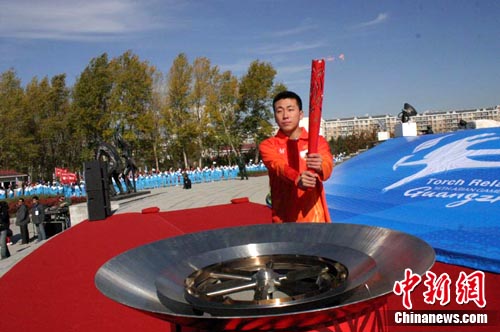 火炬最后傳到長(zhǎng)春市公安消防支隊(duì)凈月大隊(duì)消防員孟繁金手中,由他在長(zhǎng)春雕塑公園主雕塑前點(diǎn)燃圣火盆;鹁?zhèn)鬟f現(xiàn)場(chǎng)還舉行了一系列群眾性全民健身展示活動(dòng),來(lái)為廣州亞運(yùn)會(huì)加油助威。