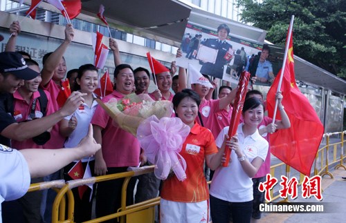 和黃利榮一樣處于興奮之中的羅湖邊檢站的同事們,早在兩天前就前去傳遞路線踩點。18日當(dāng)天幾十名民警自發(fā)前往市民中心,拉著橫幅、高舉國旗,在火炬?zhèn)鬟f沿線為黃利榮吶喊助威。黃利榮表示,平安亞運任重道遠,她將以火炬?zhèn)鬟f為動力,和她的同事們一起,在邊檢崗位上竭誠為出入境旅客服務(wù),為實現(xiàn)‘平安亞運’的目標(biāo)不懈努力,做傳播亞運精神的文明使者。完