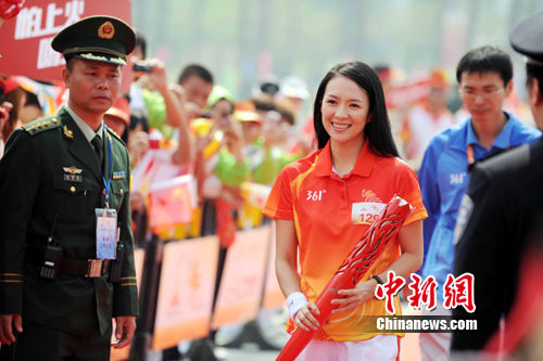 9點(diǎn)30分,亞運(yùn)圣火在歡呼聲中到來(lái)。第一棒火炬手為前短道速滑名將、中國(guó)冬奧歷史上首位冠軍得主、國(guó)際奧委會(huì)委員楊揚(yáng),在廣州市副市長(zhǎng)龔兒珍宣布傳遞活動(dòng)正式開(kāi)始后,接過(guò)火炬后開(kāi)始傳遞。
