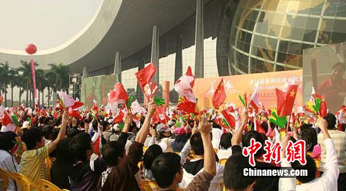 中新網(wǎng)廣州11月11日電(黃雪琴)11日上午9時(shí)30分,第16屆廣州亞運(yùn)動(dòng)會(huì)火炬?zhèn)鬟f(廣州站)最后一站傳遞活動(dòng)在廣州大學(xué)城舉行。揚(yáng)揚(yáng)、朗朗、章子怡、鐘南山等130位名人齊上陣,亞運(yùn)激情在廣州大學(xué)生中激蕩。