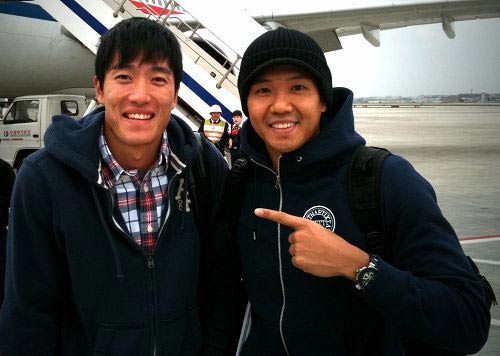 臺(tái)灣藝人“黑人”陳建州與劉翔同機(jī)抵達(dá)廣州。他也在第一時(shí)間將這一“幸運(yùn)”展示在微博上:“我一早飛到廣州的飛機(jī)上旁邊竟然坐的是‘劉翔’啊!一路上我們一直聊天,他還錄了一段給范范(陳建州未婚妻范瑋琪)祝福的話……到時(shí)跟大家分享吧,祝福他順利奪金。”