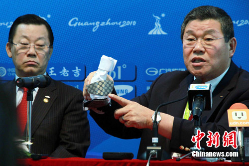 在發(fā)布會(huì)上,梁振錫特意展示了兩塊黑色的感應(yīng)器以及腳部的模型,并解釋說,每個(gè)參賽隊(duì)員都要放置感應(yīng)器,正確的是應(yīng)該放在襪子即腳背上的位置,而楊淑君的感應(yīng)器卻放在了腳后跟的位置,這樣“容易得分,對(duì)其他隊(duì)員明顯是不公平的”。