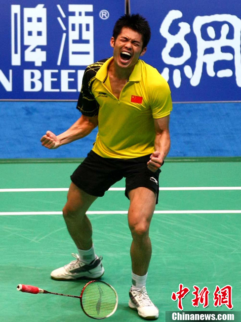 中新網(wǎng)廣州11月21日電 題:林丹仰天長嘯盡情張揚 亞運金牌見證新王者加冕