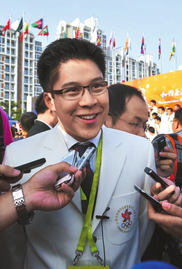 昨天下午,中國(guó)香港代表團(tuán)在運(yùn)動(dòng)員村的升旗廣場(chǎng)舉行了盛大的升旗儀式,包括香港代表團(tuán)團(tuán)長(zhǎng)劉掌珠、副團(tuán)長(zhǎng)霍啟剛在內(nèi)的近百名運(yùn)動(dòng)員和官員出席了本次升旗儀式。華西都市報(bào)記者獲準(zhǔn)進(jìn)入運(yùn)動(dòng)員村升旗廣場(chǎng)參加了本次升旗儀式,在升旗儀式之后,香港代表團(tuán)副團(tuán)長(zhǎng)霍啟剛接受了華西都市報(bào)記者獨(dú)家專(zhuān)訪。