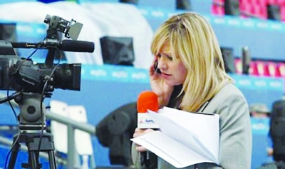 有劉翔的比賽,媒體也會(huì)為之瘋狂!在距離劉翔比賽還有3個(gè)多小時(shí)的時(shí)候,不少電視媒體已經(jīng)在跑道一側(cè)搶占有利地形,進(jìn)行采訪準(zhǔn)備,這其中半島電視臺(tái)的美女主持人謀殺了不少菲林,她的風(fēng)頭蓋過(guò)了熟悉劉翔的央視記者冬日娜,她告訴記者,今天是為劉翔而來(lái)!“我10天前來(lái)到廣州,但今天是我第一次來(lái)田徑賽場(chǎng),除了卡塔爾的運(yùn)動(dòng)員,我最關(guān)注的就是劉翔!”