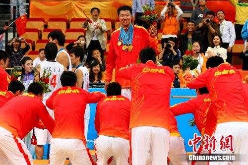 中新網(wǎng)廣州11月26日電(記者 宗晨亮 盧巖)26日,依靠老將王治郅的神勇發(fā)揮,中國男籃最后關(guān)頭頂住韓國隊的反擊,以77比71擊敗對手,奪得廣州亞運(yùn)會男籃金牌。