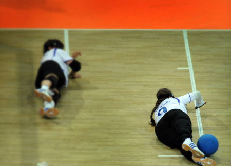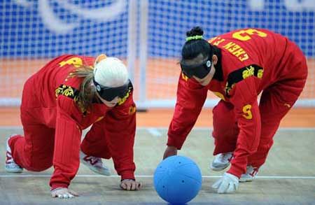 盲人門球運(yùn)動(dòng)是根據(jù)盲人視力障礙特點(diǎn)而專門設(shè)計(jì)的一項(xiàng)集體球類項(xiàng)目,它需要運(yùn)動(dòng)員根據(jù)觸覺來確定自己在場(chǎng)上的位置、方向;根據(jù)聽覺來判斷球的方向、速度,從而迅速做出反應(yīng)。這項(xiàng)運(yùn)動(dòng)的形式適合于盲人視覺功能障礙的局限,集安全性、競(jìng)技性、觀賞性于一體,既突出運(yùn)動(dòng)員個(gè)人技術(shù)又強(qiáng)調(diào)團(tuán)隊(duì)配合。有人作了這樣的比喻:“盲人門球運(yùn)動(dòng)是一項(xiàng)球似籃球,球門似足球,而擲球動(dòng)作像保齡球的運(yùn)動(dòng)! (來源: 亞殘運(yùn)會(huì)官方網(wǎng)站)