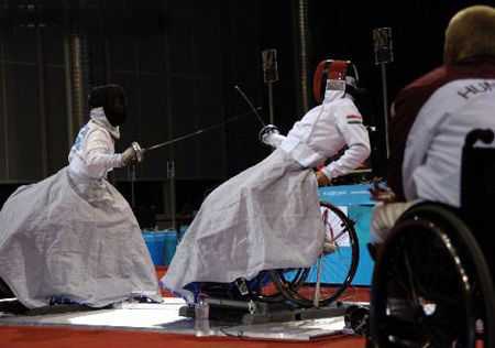 輪椅擊劍運(yùn)動是根據(jù)下肢殘疾運(yùn)動員(包括截肢, 脊髓灰質(zhì)炎, 腦癱和截癱)的特點(diǎn)而專門設(shè)計(jì)的一項(xiàng)運(yùn)動。對于觀眾來說,輪椅擊劍運(yùn)動最讓他們感到與眾不同的,就是比賽雙方運(yùn)動員的輪椅都固定在可調(diào)節(jié)軌道的框架上進(jìn)行比賽。然而,盡管坐在這樣的輪椅上,運(yùn)動員只能自由移動他們身體的上半部分,但他們出劍的速度并不比健全運(yùn)動員慢,甚至要更快。