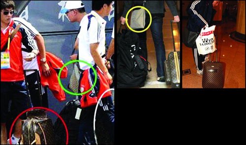 其實,這支國足去年12月首次集中的時候,其行李中大量的“LV”包就引起了外界的極大興趣,當(dāng)時周海濱和崔鵬的世界名牌裝束還被拍下來發(fā)到了網(wǎng)絡(luò)上,LV拉桿行李箱,LV背包,還有Prada的腰帶、勞力士、江詩丹頓等名牌手表,甚至有人進行了估算,光國足的裝備就價值百萬元以上。