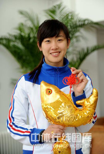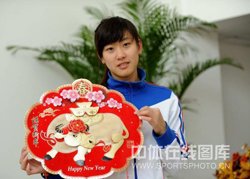 2009年1月7日,在新年即將來臨之際,中國女子佩劍隊(duì)隊(duì)員譚雪在北京拍攝新年照,向全國人民恭賀新年。