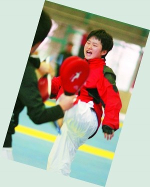 在軍體院的外訓(xùn)館中,近50名中韓一線跆拳道選手在韓國國家隊(duì)教練文元載的指導(dǎo)下發(fā)出歇斯底里的撕殺聲,其中那個(gè)清脆響亮的聲音則是來自北京奧運(yùn)冠軍吳靜鈺,個(gè)頭在隊(duì)中排行倒數(shù)第二的小女孩,用快準(zhǔn)狠且令人眼花繚亂的步伐猛踢著同訓(xùn)的韓國男隊(duì)員手中的腳板;祀s在近50名隊(duì)員中的她,身上絲毫不見奧運(yùn)冠軍級的“小灶”。