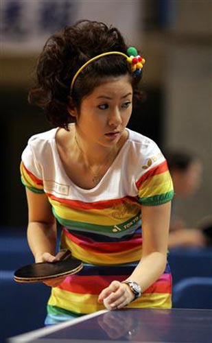 在日本乒壇,福原愛名聲最大,其次就是有著漂亮臉蛋、性感身材的四元奈生美了。今年30歲的四元在日本的影響并不比福原愛低多少。從2007年的全日本乒乓球錦標(biāo)賽至今,這位美女球員每次比賽都會換上不同的時(shí)尚超短裙,或是露出香肩的吊帶衫參賽。而且,她的頭飾也都是經(jīng)過發(fā)型師精心設(shè)計(jì)的,爆炸式、淑女式……總之,五顏六色的服裝+各類怪異的發(fā)型+比賽場上揮拍動作都是那么的迷人,相比于其他運(yùn)動員的一臉嚴(yán)肅,四元奈生美在賽場上刮起的時(shí)尚之風(fēng)迷倒了很多日本男球迷。