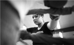 謝莉的19歲生日還差兩周,她的對手26歲,報名體重只比她重2公斤,看起來卻遠遠比謝莉壯得多也高得多;艨丝吹剿弊由虾褪直凵线有文身,好像在監(jiān)獄待過。和電影里伊斯特伍德飾演的教練一樣,霍克信奉的第一信條也是“保護自己永遠是第一位的”,于是他找到了拳賽組織者。