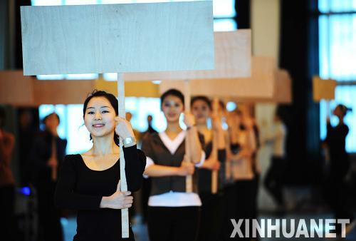 汪燕介紹,大冬會(huì)持牌手的訓(xùn)練參照了2008年奧運(yùn)會(huì)禮儀小姐的訓(xùn)練方法。訓(xùn)練主要集中在體能、形體和綜合禮儀三門課程上?此坪(jiǎn)單普通的站姿、行走、轉(zhuǎn)身、微笑,每一個(gè)動(dòng)作都有嚴(yán)格的要求,都要分解練習(xí)上百次。長(zhǎng)時(shí)間舉牌對(duì)女孩們的臂力和體力都是很大的挑戰(zhàn),在體能訓(xùn)練中,汪教練要求女孩手持裝滿沙子的礦泉水瓶跳健身操。雖然訓(xùn)練異常艱苦,但這群“80后”的姑娘們沒有怨言,有些持牌手甚至帶病訓(xùn)練。