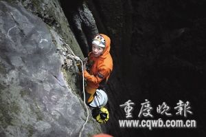 欣喜之余,隊(duì)員面臨一個(gè)艱難選擇:繼續(xù)下降,水的巨大沖擊力,不但對(duì)繩子、下降器等器械是個(gè)考驗(yàn),更是對(duì)操作者嚴(yán)峻考驗(yàn),一旦發(fā)生脫滑事故,后果不堪設(shè)想。還有,隊(duì)員衣服被淋濕有失溫危險(xiǎn),輕者體力急劇下降、嘔吐、暈厥,重者危及生命;不下,本次探險(xiǎn)就此告終,因?yàn)楦緹o(wú)法繞道。