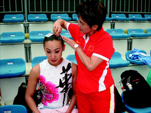 此后的一天半,張曉歡不太記得是怎么過來的。能回憶起的,就是比賽當(dāng)天水立方里的燈光,全場坐滿了人,她們的三位教練:鄭嘉、汪潔、井村雅代望著這九個姑娘。
