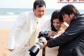 為了排遣等待天晴的無聊時間,張娟娟聽取了店里工作人員的建議,趁機挑選婚禮服。雖然口口聲聲地說被前一天的拍攝累壞了,但是一看到為自己準備好的極品婚紗,張娟娟又興奮地進入了試衣間,而她的老公薛海峰照舊老老實實坐在沙發(fā)上等待!疤膳铝耍 背弥鴱埦昃耆Q另一套衣服,被老婆的N套華麗裙裝轟炸得暈頭轉向的薛海峰悄悄地對記者說:“我已經審美疲勞了!