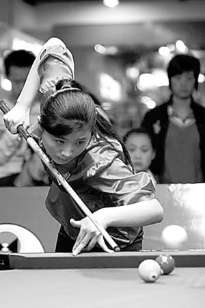 21歲的付小芳剛接觸臺球就是玩的16彩。從2002年開始在佳木斯叔叔開的球房里練球,叔叔就是她的啟蒙老師。付小芳于2004年到北京專門學(xué)習(xí)臺球。“我的目標(biāo)就是獲得世界冠軍!彼刻旎ㄔ谂_球上的時間不會少于八九個小時。從2005年開始,付小芳就陸續(xù)奪得過一些全國冠軍。到2006年,付小芳在全國的知名度已經(jīng)很高。