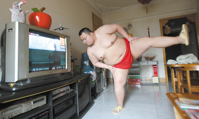 短短4年時間,體重從70公斤增加到了至少150公斤,沙坪壩區(qū)陳家灣一胖哥喜歡上了冷門的相撲運動,并打算3年后自費前往日本學習相撲術,成為一名職業(yè)相撲手。這名“重慶相撲男”的照片一貼上網就成了網絡紅人。由于重慶的相撲選手只有他一個,一直找不到合適的對手過招,無奈之下,前日晚上,這位紅人在天涯上發(fā)帖,正式邀請一位泰拳選手進行一場另類的比賽。