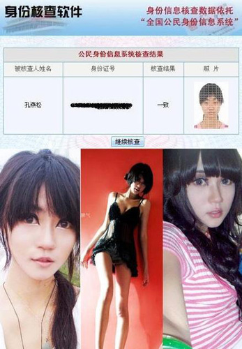 孔燕松獲網(wǎng)友票選為“美腿大賽冠軍”,還在網(wǎng)絡(luò)上大發(fā)美腿照片,風情萬種性感堪比芭比娃娃。但在面對身份證照片時,網(wǎng)友們還是大呼“長相幻滅”“一切盡在不言中”。