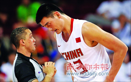 北京時(shí)間昨天,德國(guó)最大的體育傳媒《踢球者》公布了第39屆德國(guó)2008年度最佳體育圖片獎(jiǎng),其中姚明在北京奧運(yùn)上一幅質(zhì)問(wèn)裁判的照片被評(píng)為“北京奧運(yùn)類”最佳照片。姚明的這張“質(zhì)疑裁判”照片是發(fā)生在奧運(yùn)小組賽上,中國(guó)與德國(guó)較量中,這是一場(chǎng)決定誰(shuí)能夠出線的生死戰(zhàn),所以賽場(chǎng)上雙方拼搶非常激烈,火藥味十足。而一次有爭(zhēng)議的判罰,導(dǎo)致姚明來(lái)到場(chǎng)邊與裁判交涉,于是就有了這樣一張照片。