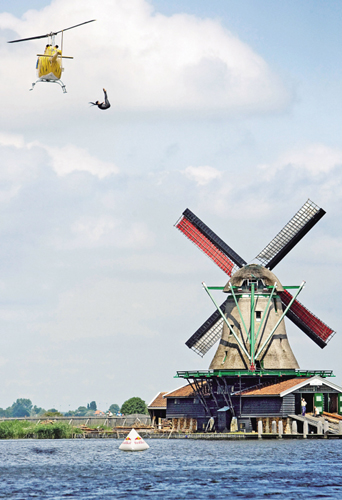 10米臺(tái)?還是3米板?跳水一定要站在固定的地方往下跳嗎?哥倫比亞選手奧蘭多·杜克日前就從飛翔在30米高空的直升飛機(jī)上縱身跳下……轉(zhuǎn)體、空翻、抱膝一系列動(dòng)作做得絲絲入扣,并不比奧運(yùn)冠軍田亮遜色多少。
