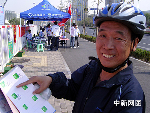 中新網(wǎng)濟南10月25日電(記者 翁陽)10月25日是飛人劉翔進(jìn)行第十一屆全運會110米欄決賽的日子。中午時分,本社記者在濟南奧體中心巧遇兩名專程從石家莊趕來觀看劉翔比賽的六旬老翁。杜存生和李云江這兩位老人神采奕奕,一身專業(yè)體育裝備,他們以單車每日百余公里的速度,用時三天來到濟南。