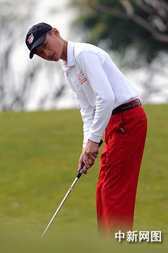 從美國紐約馬不停蹄地前來參賽的粱政不負(fù)眾望,在23日凌晨1點(diǎn)鐘抵達(dá)金灣球場、9:35從10號洞出發(fā)、完全沒有時間調(diào)整時差的情況下,打出76桿,取得并列第5名。