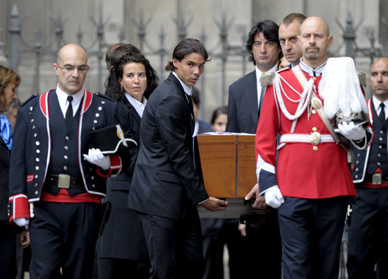 晚上18時,他的葬禮在大教堂開始,西班牙國王胡安-卡洛斯攜妻子索菲婭、王儲費利佩及妻子、埃倫娜公主和克里斯蒂娜公主以及羅格、西班牙著名F1車手阿隆索、西班牙網(wǎng)球天王納達爾、巴薩俱樂部主席等出席。
