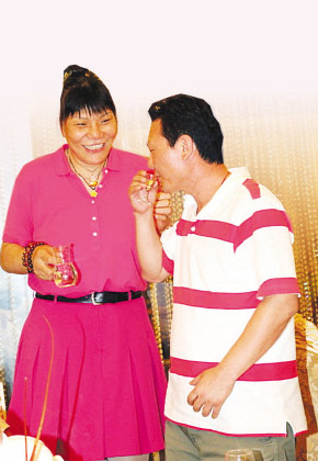 上午10點(diǎn)30分,一輛寶藍(lán)色的本田商務(wù)車(chē)抵達(dá)酒店門(mén)前,身著一襲寶藍(lán)色連衣裙的鄭海霞和西裝筆挺的夫婿徐慶華下車(chē)后迅速進(jìn)入酒店,路人甚至都沒(méi)來(lái)得及認(rèn)出海霞。11點(diǎn)30分,在一間不大的會(huì)議室內(nèi),隨著現(xiàn)場(chǎng)輕柔的樂(lè)曲,司儀宣布婚禮開(kāi)始,現(xiàn)場(chǎng)100多位嘉賓、親友聚攏在婚禮臺(tái)四周,一同目睹了鄭海霞與丈夫徐慶華的優(yōu)雅現(xiàn)身。盡管對(duì)于此次婚禮鄭海霞夫婦一再要求低調(diào),但在前天的婚禮現(xiàn)場(chǎng),一些必要的程序還是照常進(jìn)行。大概是要難為一下昔日的“亞洲女籃第一中鋒”,現(xiàn)場(chǎng)司儀要求海霞對(duì)婆婆改口時(shí)用標(biāo)準(zhǔn)的河南話(huà)喊一聲“娘”,惹得見(jiàn)過(guò)無(wú)數(shù)大世面的鄭海霞當(dāng)場(chǎng)紅臉。但在親友們的一再鼓勵(lì)下,海霞還是羞澀地完成了任務(wù),大喊了一聲“娘”。
