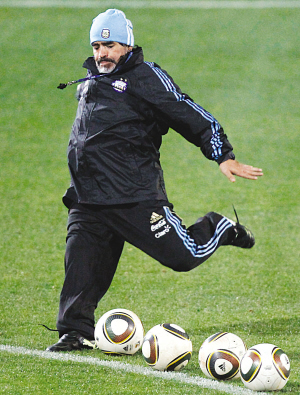 球王老了,如今功力如何?在阿韓之戰(zhàn)秀了一腳腳后跟停球獲得全場一片歡呼后,老馬似乎對自己的腳法更加自信?磁_上,300名記者一下子全部涌到球門這邊,都想一睹球王風采。老馬向看臺上揮了揮手,開始了表演。雖然身材早已走形,但馬拉多納的腳法卻相當不賴,在幾腳射門偏出后,老馬總算漸入佳境,站在禁區(qū)線上的射門,角度之刁鉆,令挑剔的阿根廷記者也嘖嘖贊嘆。老馬越踢越起勁,到后來竟然連續(xù)3次打中門框,惹來場邊一陣哄笑。