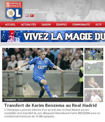 中新網(wǎng)7月2日電 北京時間今日凌晨,里昂官網(wǎng)宣布:球隊(duì)當(dāng)家前鋒本澤馬將加盟西甲豪門皇馬,轉(zhuǎn)會費(fèi)為3500萬歐元。這是繼卡卡、C羅和阿爾比奧爾之后,弗洛倫蒂諾今夏為皇馬引進(jìn)的第4名強(qiáng)援。
