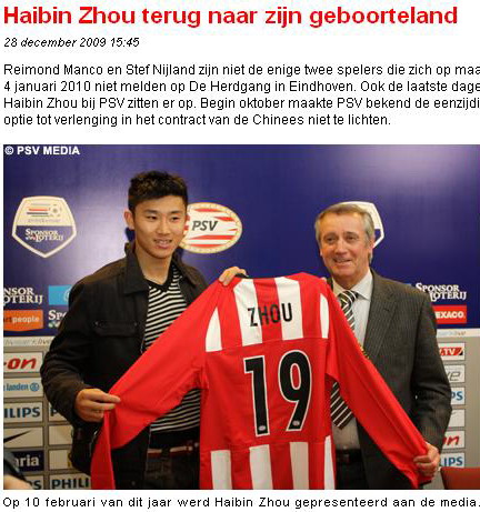 “周海濱目前已經(jīng)回到了中國,在這里,埃因霍溫誠摯的祝福他能夠在未來取得更大的成功。”埃因霍溫最后向周海濱表達(dá)了俱樂部的祝福。