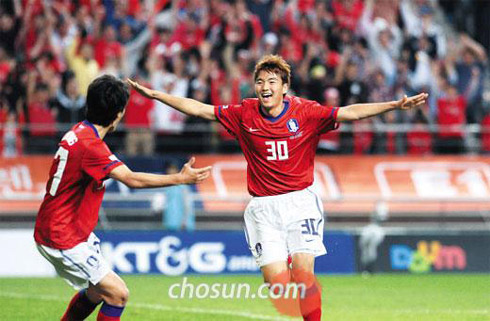 在世界杯開幕前26天進行的韓國國內(nèi)最后一場熱身賽上,韓國隊以2比0戰(zhàn)勝南美球隊厄瓜多爾。當天勝利的主角是李升烈和李菁龍這兩名年輕隊員。