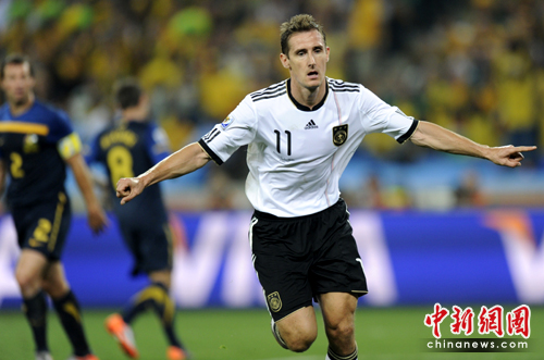 中新網6月14日電 在今天凌晨進行的一場南非世界杯小組賽中,德國隊迎來了首個對手澳大利亞,經過90分鐘激戰(zhàn),憑借波多爾斯基、克洛澤穆勒和卡考的進球,在以4-0狂勝對手的同時,也創(chuàng)下了迄今為止南非世界杯的最大比分。