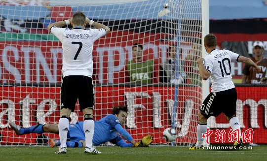 中新網(wǎng)6月18日電 自從1974至今,德國日耳曼戰(zhàn)車就一直以善射點球而著稱。36年來,德國在比賽中罰點球彈無虛發(fā)。但是,這個優(yōu)良的記錄卻被一個波蘭裔球員打破,波多爾斯基在德國隊與塞爾維亞隊的比賽中罰丟了一個點球,使近60分鐘內(nèi)以10人應戰(zhàn)的德國隊0比1遺憾告負。