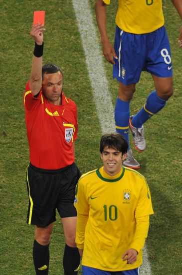 中新網(wǎng)6月21日電 第二張黃牌!裁判員出示紅牌將卡卡罰下!在世界杯小組賽巴西隊對科特迪瓦隊的比賽中,巴西隊中場核心卡卡吃到紅牌下場,并且可能面臨被追加處罰的危險。作為世界足球先生而在世界杯賽場被罰下,卡卡直追法國惡漢齊達內(nèi)!
