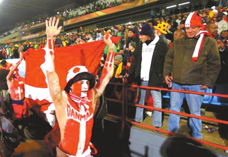 世界杯第一次在非洲、在冬天舉行,看臺(tái)上再狂熱的球迷,面對(duì)刺骨的寒風(fēng),也只能先把自己裹成粽子。不過(guò),沒(méi)有最狂熱只有更狂熱,在喀麥隆隊(duì)與丹麥隊(duì)的比賽中,兩名丹麥球迷上演了本屆世界杯的首例“裸奔”。