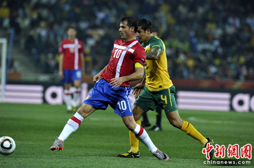 中新網(wǎng)6月24日電 今天凌晨,南非世界杯D組進(jìn)行了最后一輪的較量。塞爾維亞在內(nèi)斯普雷特的姆伯貝拉體育場迎戰(zhàn)澳大利亞隊。雖然澳大利亞2-1擊敗塞爾維亞隊,但仍然因為凈勝球劣勢不敵加納,無緣小組出線。