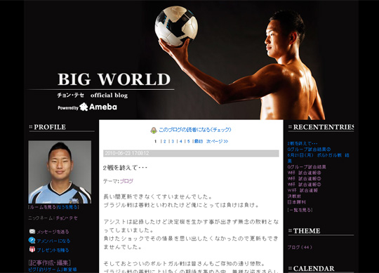 中新網6月25日電 據韓國媒體JES報道,“人民魯尼”鄭大世(27歲)在自己的博客上留下了自己對于慘敗葡萄牙的感受。6月23日下午,鄭大世在博客上刊登了題為《結束第二戰(zhàn)》的文章。