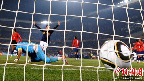 中新網6月26日電 北京時間今天凌晨,世界杯小組賽進入最后一輪的收官之戰(zhàn)。歐洲冠軍西班牙隊在與南美球隊智利隊的比賽中,依靠比利亞和伊涅斯塔的進球,以2比1擊敗智利隊。在1/8決賽中,他們成功避開巴西隊,將遭遇葡萄牙。而智利隊則將與巴西隊進行對決,爭奪一個八強席位。比賽中,智利隊后腰球員埃斯特拉達在上半場連吃兩張黃牌,被紅牌罰下。