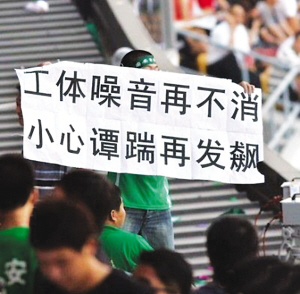 昨晚7點30分,2009賽季中超第14輪比賽全面打響,北京國安隊主場迎戰(zhàn)大連實德隊。盡管昨天并不是周末,但北京工人體育場上座率依然很高,球迷們打出了各種個性十足的標(biāo)語,如“工體噪音再不消 小心譚踹再發(fā)飆”,還有球迷身著“國安,跟丫死磕”的T恤衫到場為北京國安隊加油助威。另外,大連藍(lán)色激浪球迷也組織了聲勢浩大的助威團,專程從大連趕到北京為自己的球隊加油助威。